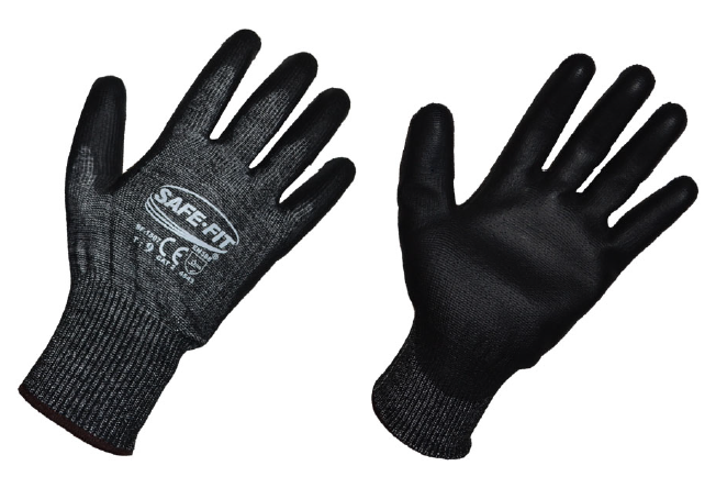 Guante resistente al corte nivel 5. Tuffalene® UHMWPE color blanco con negro, Cal.10, reforzado con hilos de acero, con recubrimiento de nitrilo espumoso en palma y dedos. Sin costuras.